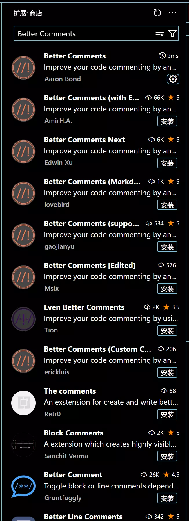 Vscode插件商店搜索Better Comments,下载安装第一个即可。