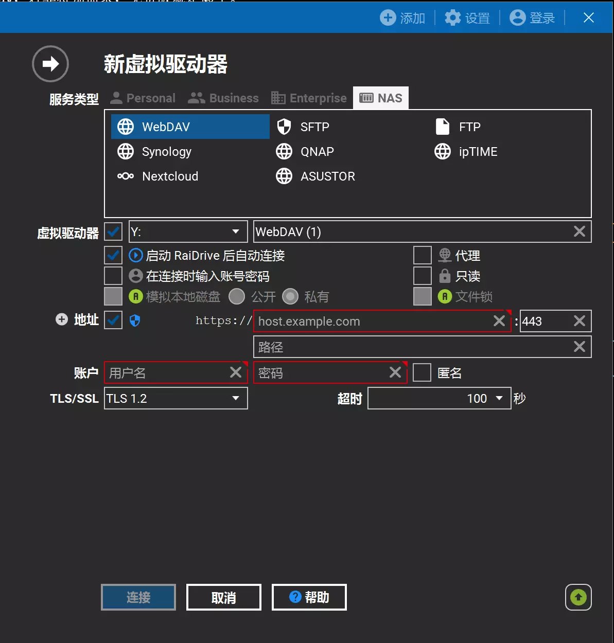 {% notel green Tip %} 需要注意的是RaiDrive分为免费版和付费版,免费版可以使用WebDav,若非特别需求,免费版就足够了。