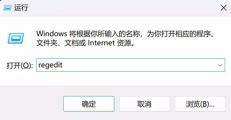 * 打开注册表编辑器:点击win+R,并在弹出界面输入regedit,进入注册表编辑器