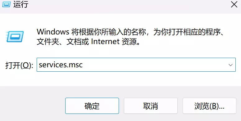 * 打开服务界面:点击win+R,并在弹出界面输入services.msc,进入服务界面