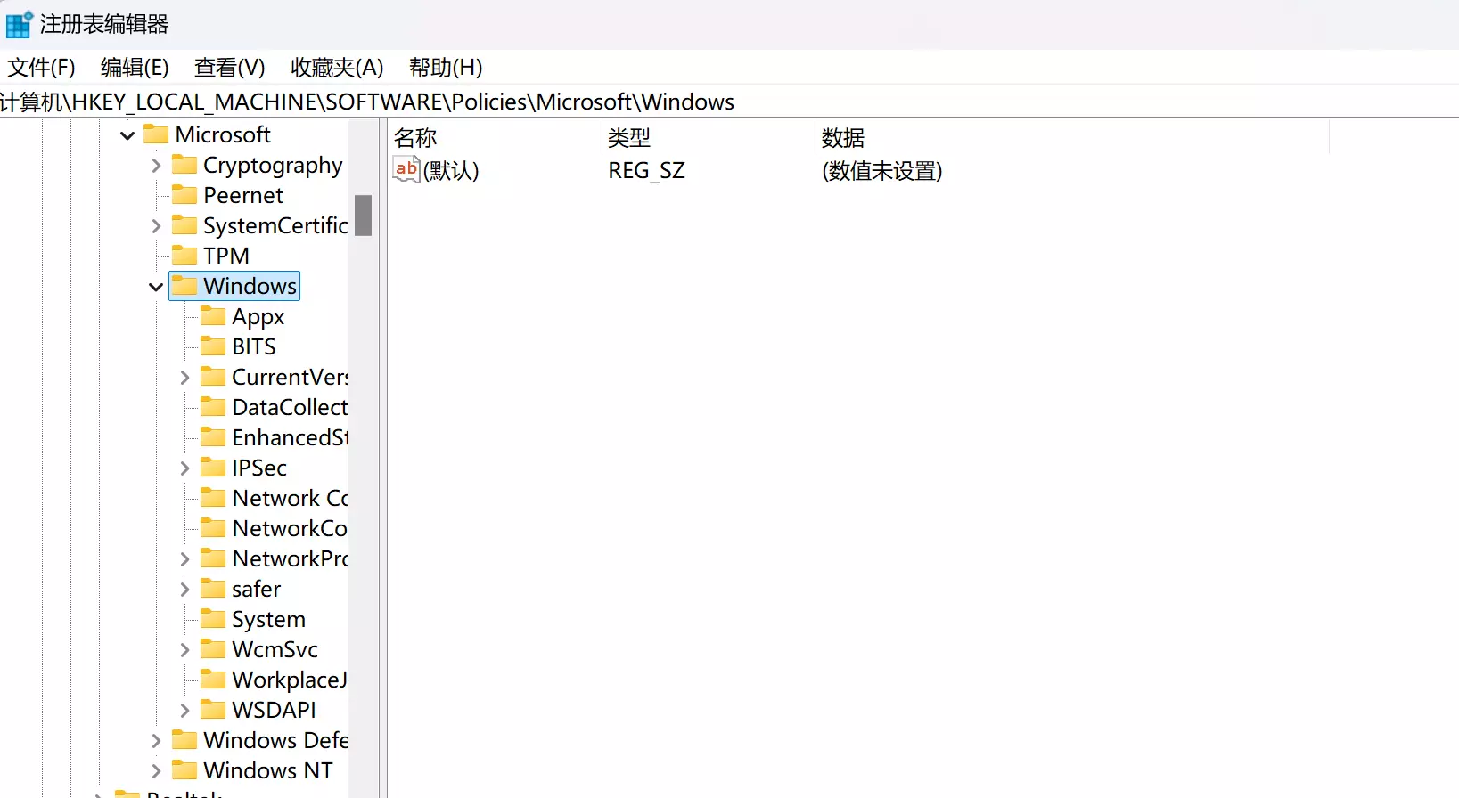 计算机\HKEY_LOCAL_MACHINE\SOFTWARE\Policies\Microsoft\Windows定位到该位置,查看是否存在Explorer项,如果不存在,则新建Explorer项